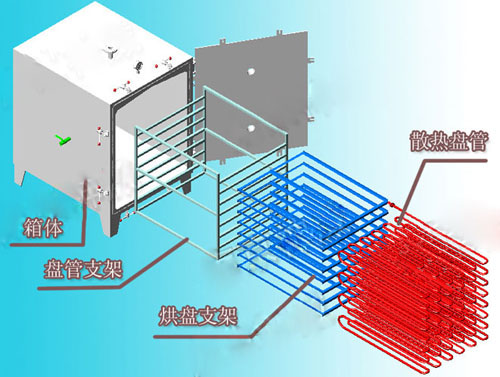 本机能在较低温度下得到较高的干燥速率,热量利用充分,适用于对热敏性物料和含有容剂及需回收溶剂物料的干燥。在干燥前可进行消毒处理,干燥过程中任何不纯物无混入,本干燥器属于静态真空干燥器,故干燥物料的形体不会损坏。